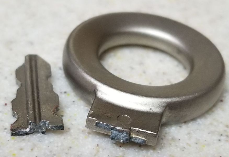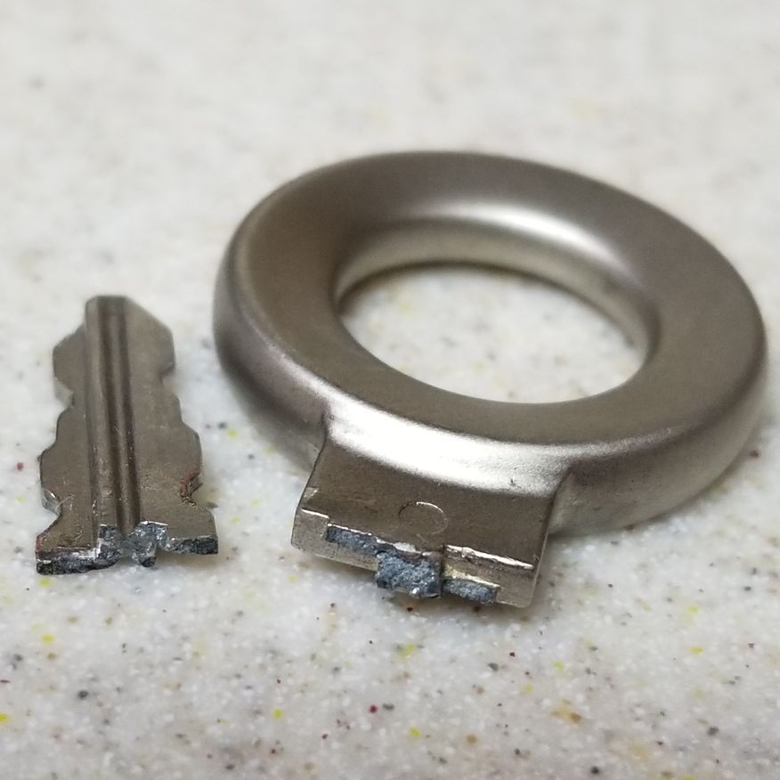 1. Ключ из дешевого хрупкого силумина отломился при деформации, когда он был вставлен в замок и его случайно задели коленом.